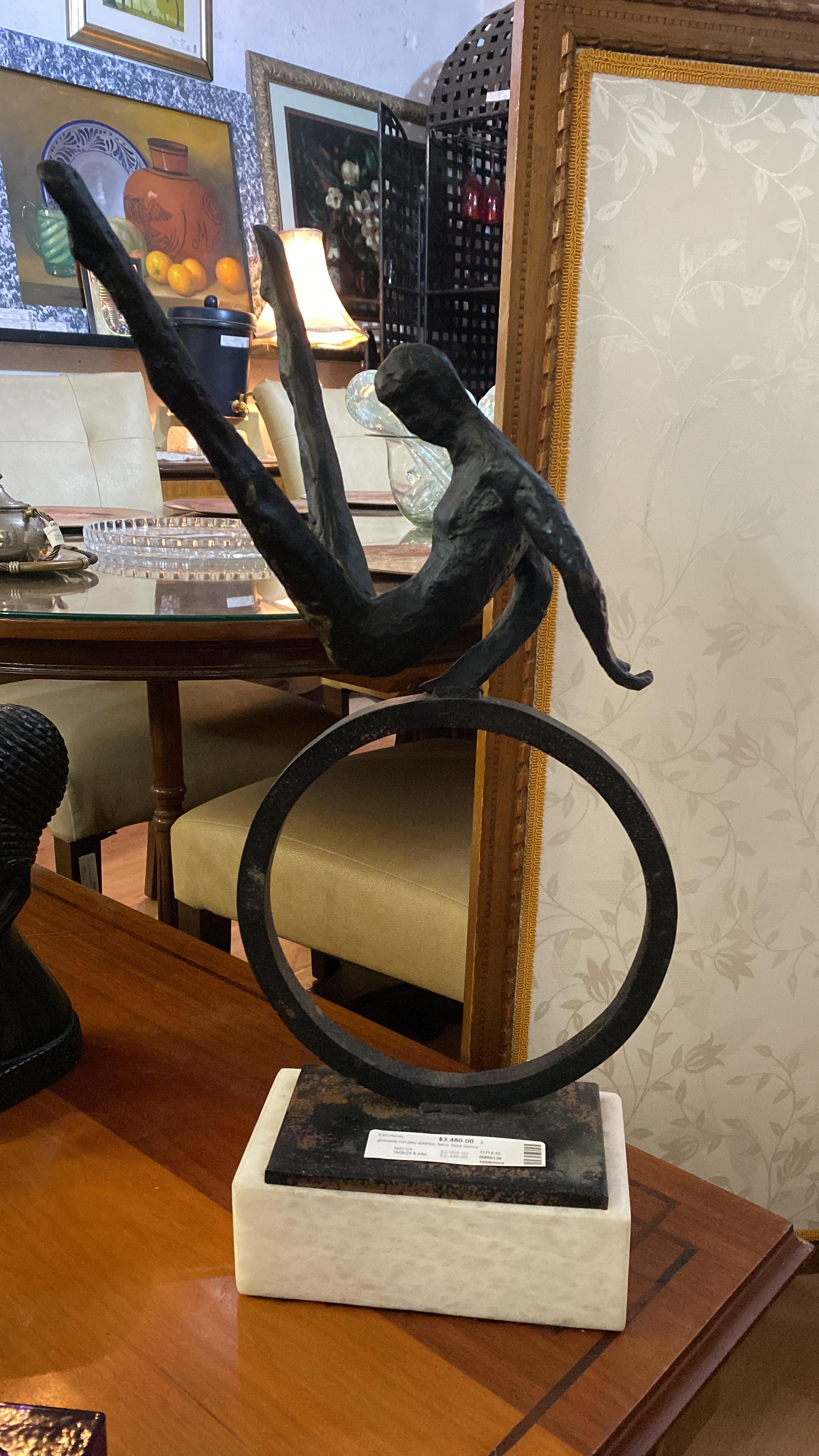 Escultura fierro con base de piedra