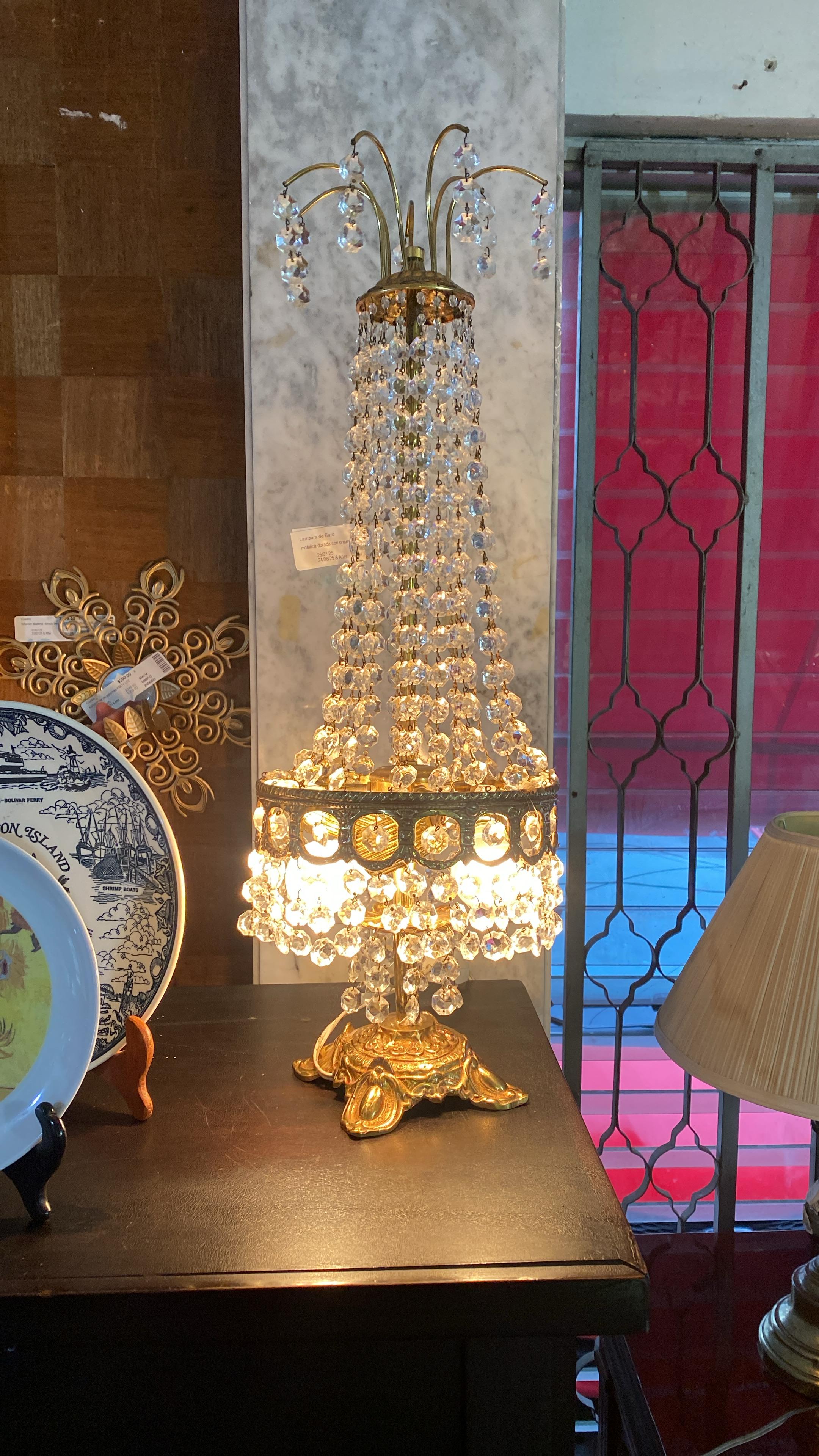 Lámpara  metal dorado y prismas