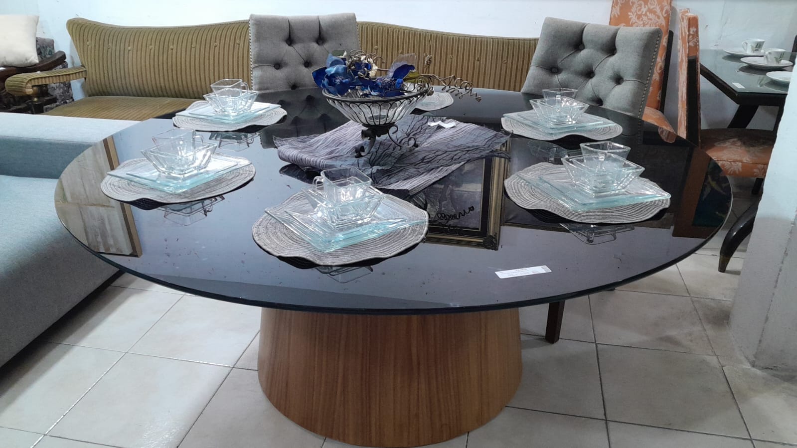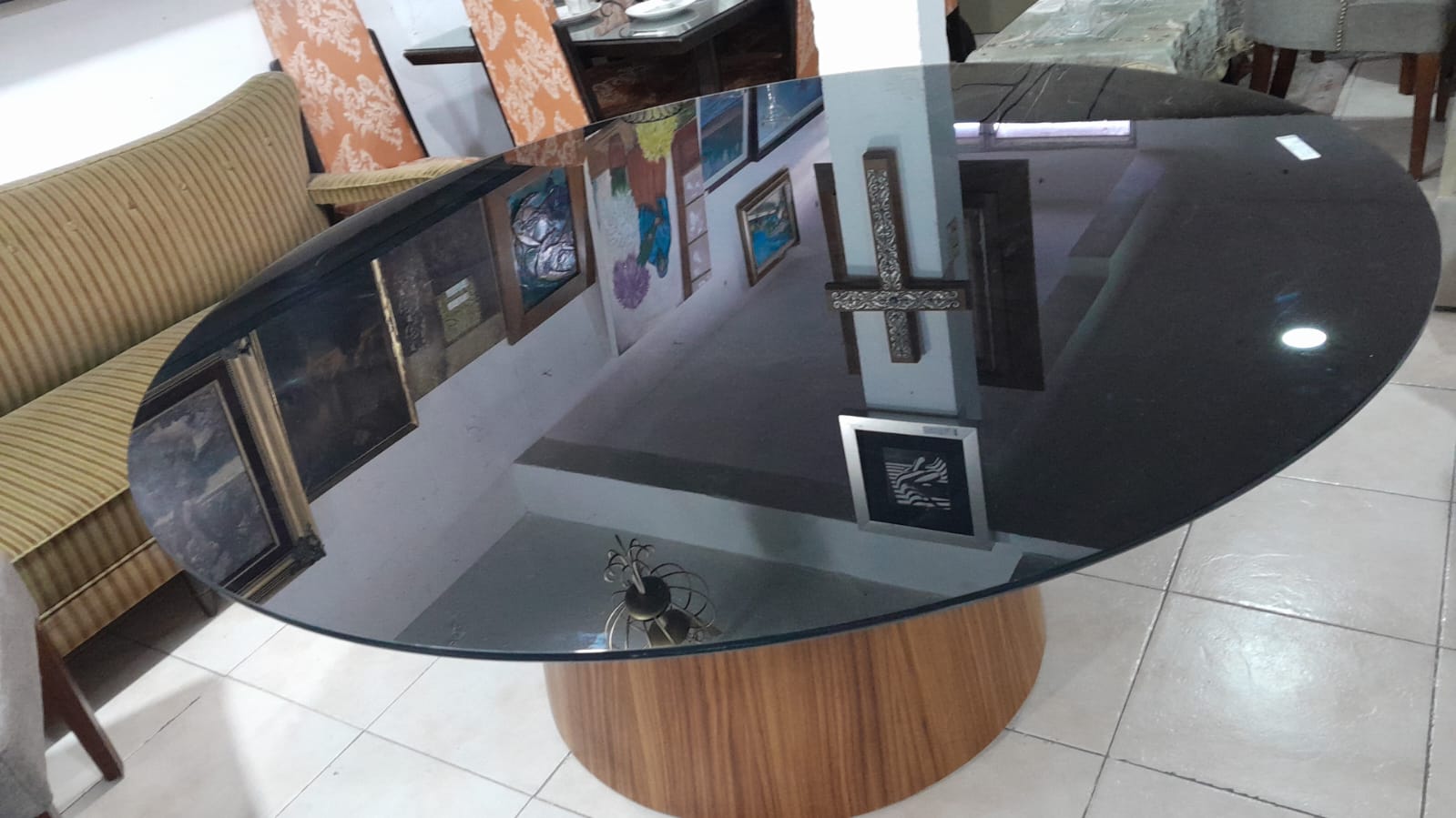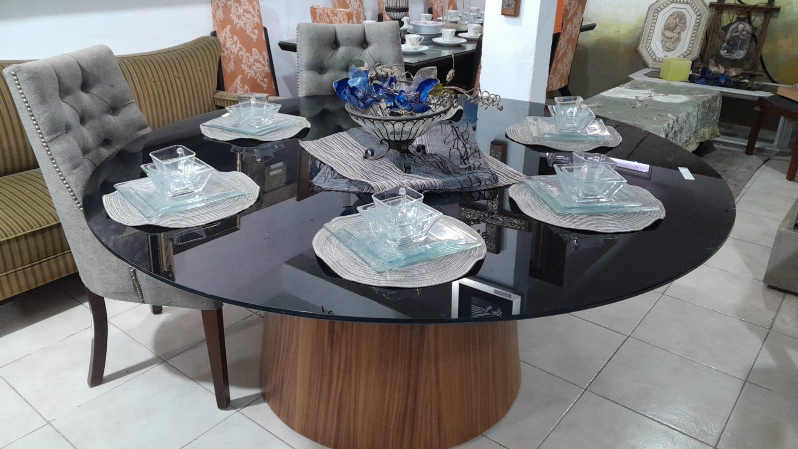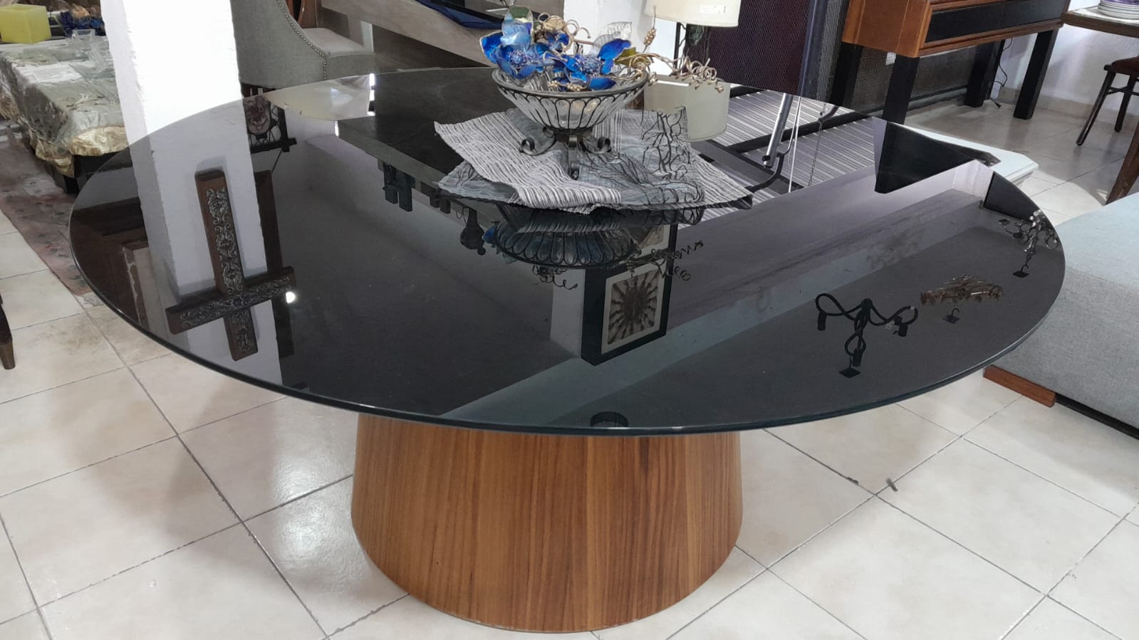 Mesa redonda chapa de parota vidrio negro grueso