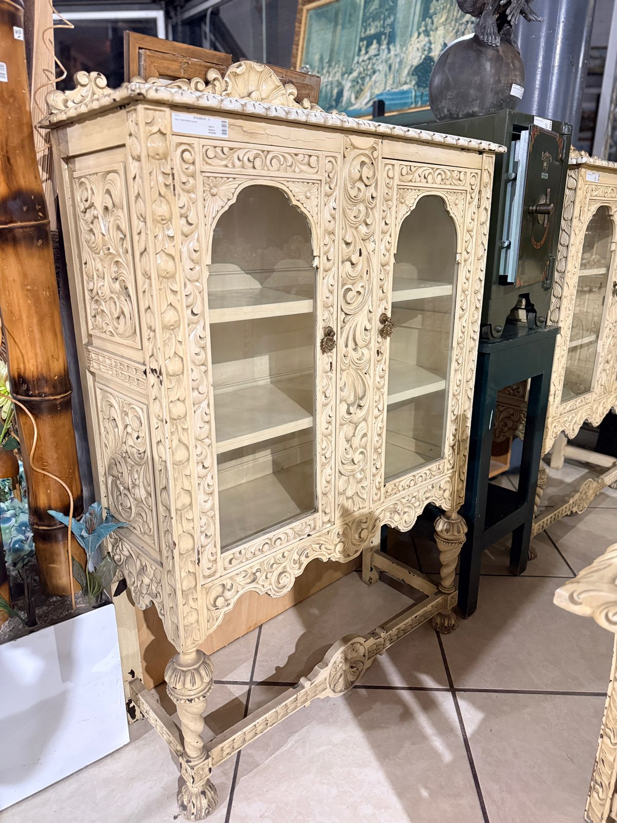 Vitrina de madera tallada con dos puertas